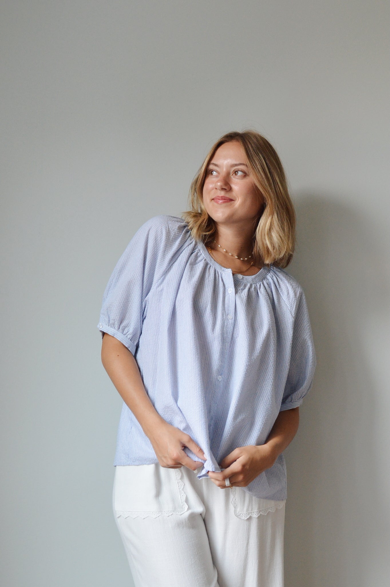 OCEAN BREEZE SEERSUCKER BLOUSE